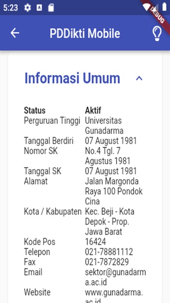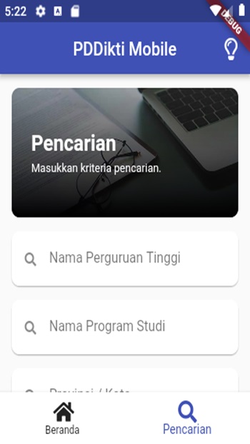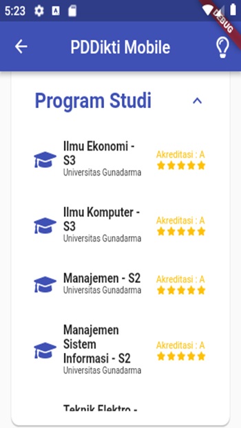 - Informasi Institusi: Pengguna dapat mencari universitas, perguruan tinggi, dan institusi pendidikan lainnya, lengkap dengan detail akreditasi dan informasi program.